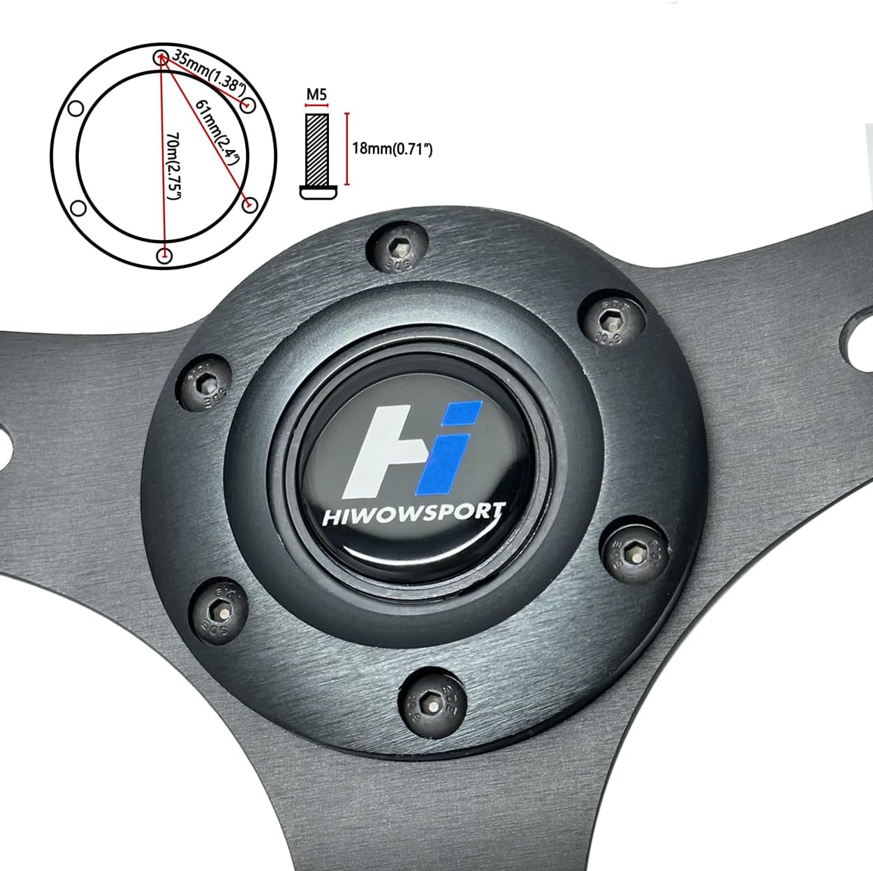 Hiracing 14inch Universal Classic Wood Grain Rivet Steering Wheel Brushed 3 Spoke 1.5inch Depth Steering Wheel with Horn Button 6 bolts