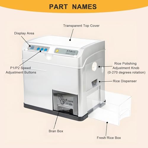 500W Automatic Rice Bran Shelling Separator/30KG/H Wheat Cereals Peeling Sheller Huller/Automatic Rice Milling Hulling Machine/Electric Rice Milling Peeling Machine/Household Electric Rice Milling Peeling Machine/Paddy Huller Sheller Hulling/Automatic Rice Dehuller/Grain Mills/Rice Husker Sheller Grinder, for light brown rice, germ rice, lightly milled rice.SPECIFICATION:Materials: Plastic + metalcolor: SilverProduct name: Smart household rice millMain function: Rice polishing and shellingRated voltage: 200-240VRice milling speed: 30KG/HPower (W): 500WNet weight (KG): 7.4KGFrequency (HZ): 50/60HZProduct size (MM): 345X253X342MMPACKAGE INCLUDE:Smart home rice mill x1