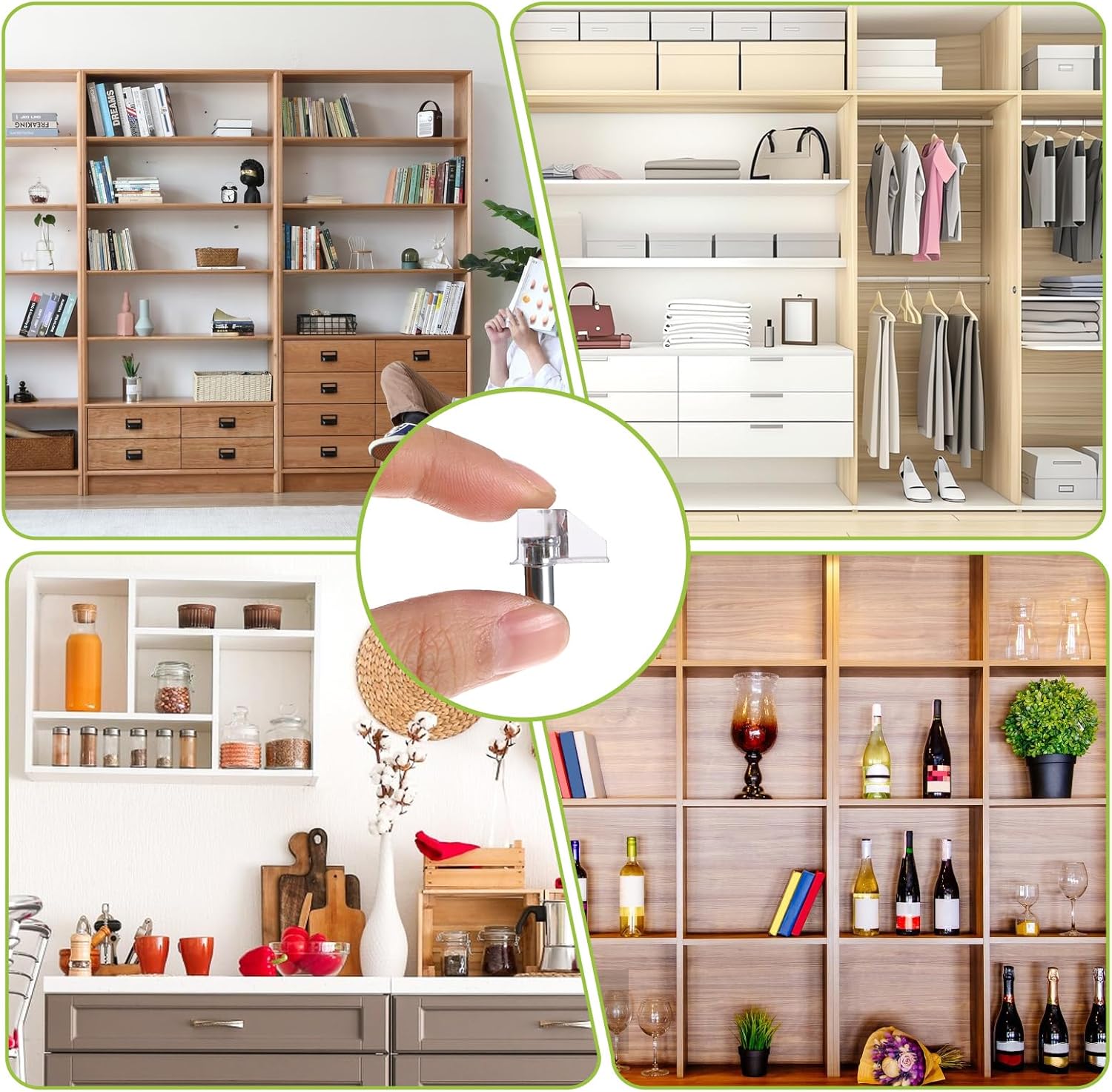 DescriptionProduct name: Shelf pegsMaterial: PlasticColor: TransparentWeight: 52gPackaging size: 15*10.5*1.9cmPackaging method: Bag packingPacking list:30pcs support cabinet shelf pins