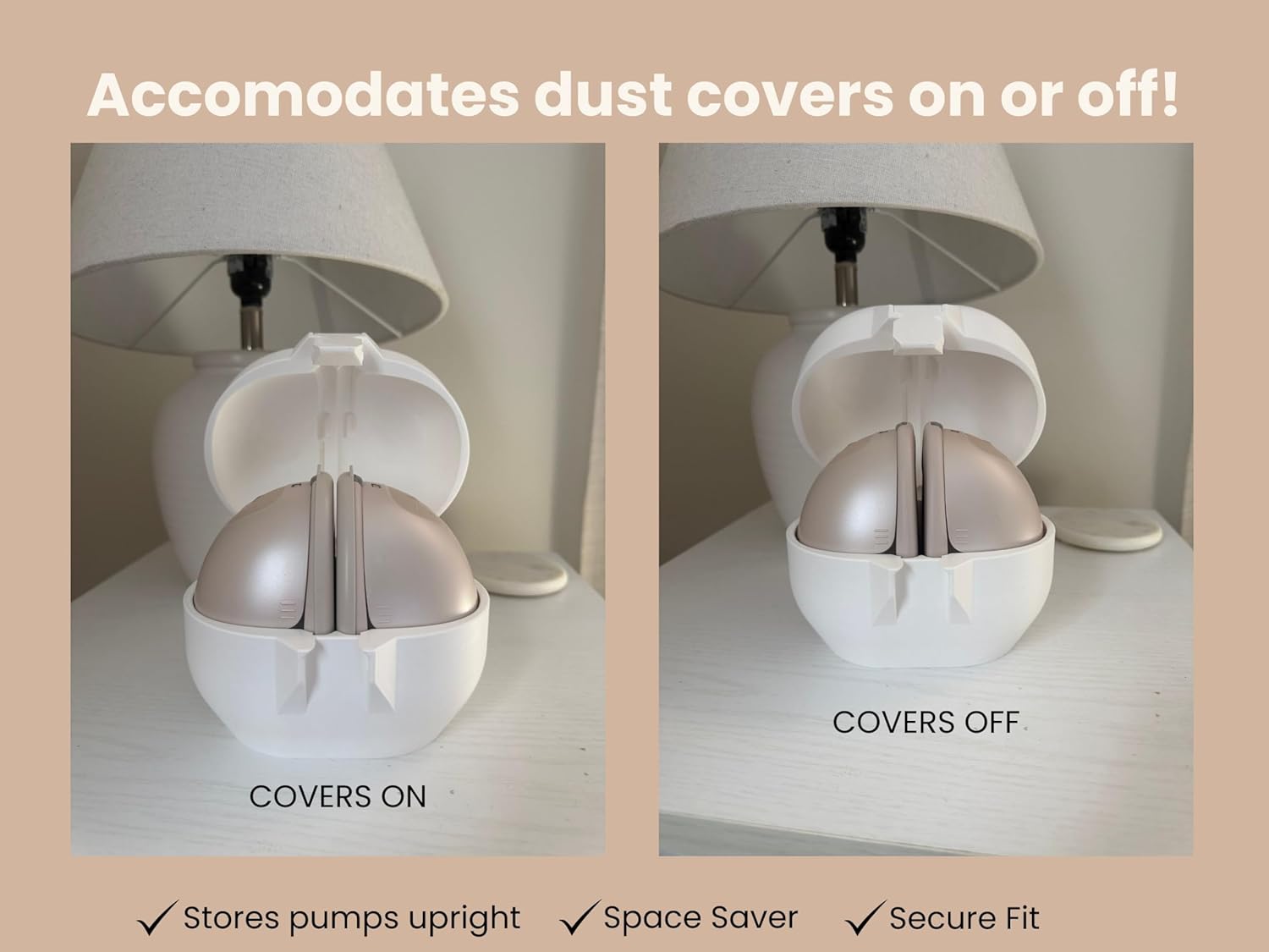 No more messy spills and bad storage! This minimalist 3D printed breast pump case was custom-designed to keep your wearable pumps upright and in place- whether you're throwing them in a work bag, diaper bag, or keeping them cool in between sessions. *This product is a storage holder designed to keep your pumps upright and contained. It is not intended for direct contact with breast milk. Wipe out any breast milk that may drip into container. For best practice, use with flange covers* Perfect for busy, tired moms who want a simple solution! Features: -Designed to fit the EUFY breast pumps -Keeps pumps upright to prevent leaks -Compact for fridge, nightstand or your on-the-go bag! -Sleek, neutral design -Easy to clean, lightweight, durable PLA plastic Ideal For: -New moms -Middle of the night pumping -Fridge or bedside storage - Baby shower or postpartum gift! NOTE: NOT dishwasher safe! Do not boil, microwave or place in sterilizer. Should be cleaned by hand with warm water or sterilizing wipe and air dried. This item is intended for adult use only. It is not a toy or medical device.