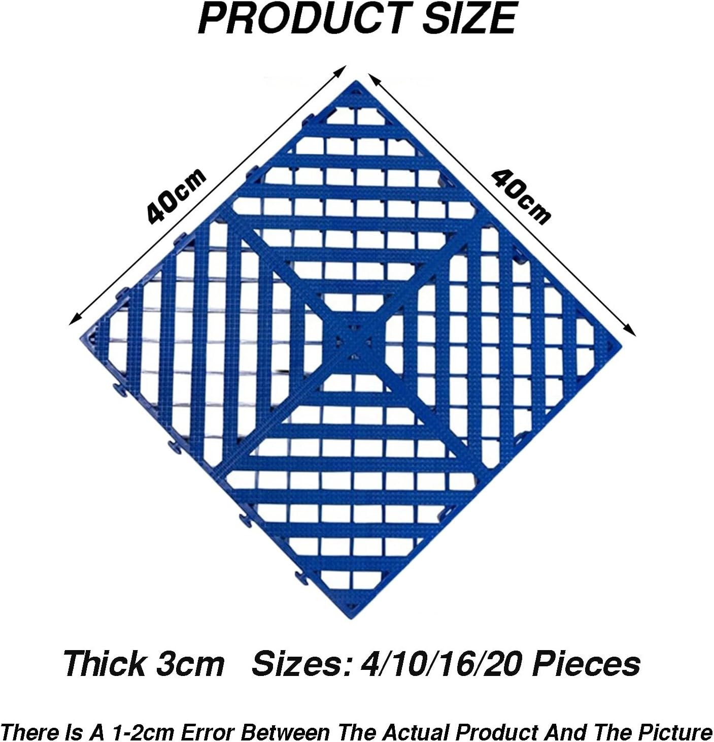 Transform your space effortlessly with our Interlocking Garage Floor Tiles. Designed for quick and hassle-free installation, these modular mats snap together seamlessly without the need for tools. Whether you’re outfitting a car wash, underground parking garage, or gym, our tiles can be customized to fit any area, ensuring maximum flexibility to meet your needs.Key Features:1. 5000kg Load Capacity: Built to withstand heavy loads, our mats remain flat and durable, accommodating even the largest vehicles with ease.2. Versatile Use: Perfect for both indoor and outdoor environments, these tiles resist harsh weather conditions while maintaining their integrity.3. Secure Interlocking Design: The innovative interlocking clips provide a secure connection, preventing detachment and ensuring stability underfoot.4. Effortless Cleaning: With a mesh design and ample thickness, simply rinse with a hose or use an air gun for quick maintenance.5. Customizable Fit: Easily cut the tiles with scissors to suit any irregular space, making them ideal for creative layouts.Specifications:- Product Name: Interlocking Garage Floor Tiles / Modular Drainage Floor Mat - Material: Polypropylene (PP)- Colors Available: Red, Yellow, Blue, Green, Black, and more- Size: 40x40x3cm- Installation Method: Interlocking Clips- Thickness: 3cm- Ideal Locations: Car washes, underground parking garages, around swimming pools, changing rooms, hot spring baths, gyms, and shower rooms.Package Options: Choose from sets of 4, 10, 16, or 20 Interlocking Garage Floor Tiles to suit your project needs.Important Notes:- Manual measurements may vary by 1-2 cm; please check the actual product for precise dimensions.- Display colors may differ slightly from the actual product; refer to the product images for true color representation.