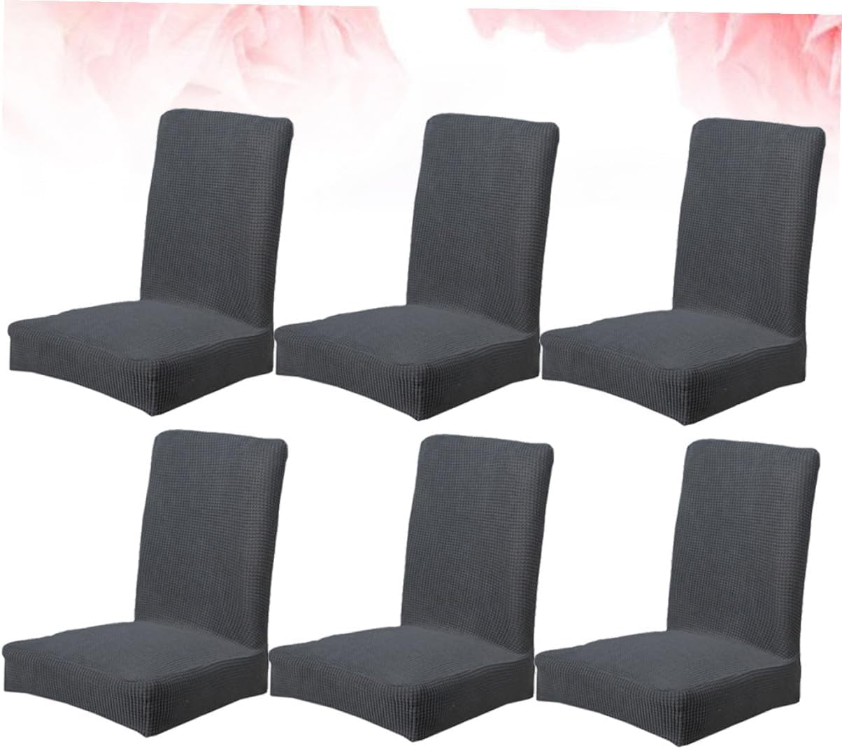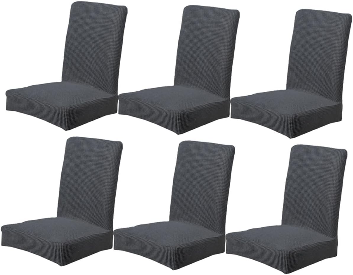 Package Include 6 covers Features - Suitable for Chair Size: Thickness of chair back: within 10 cm; Chair Back Height: 46-55cm; Chair Back Width: 36-48 cm; Seat Length: 38-49cm; Seat Width 38-49cm. - Size: 55x49x49cm. - Material: Polyester, spandex. - Color: grey. -Product Info:Dining chair cover - Easy to clean, washable, convenient to use, foldable to storage Chair Case. - Protect your chair , wet, scratch and etc Stretchy Chair Cover. - Suitable various occasions, wedding, banquet, party, meeting, ceremony, etc. - It is suitable for most of dining room chairs, chairs, banquet chairs, folding chairs. - Made of spandex and polyester, flexible enough for most of chairs.Goods DescriptionPolyester Chair Cover With simple design, comfortable, wrinkle resistant, machine washable, easy to wash.Chair Protector This chair cover is made of spandex and polyester, flexible enough for most of chairs.Chair Case Not only can protect your chair , wet and scratch, also can decorate your chair so well