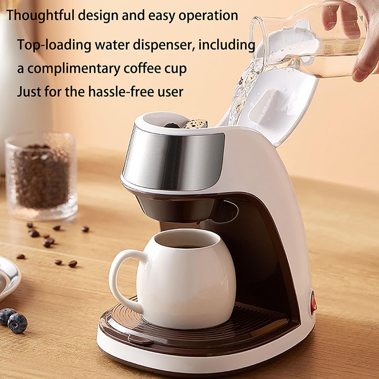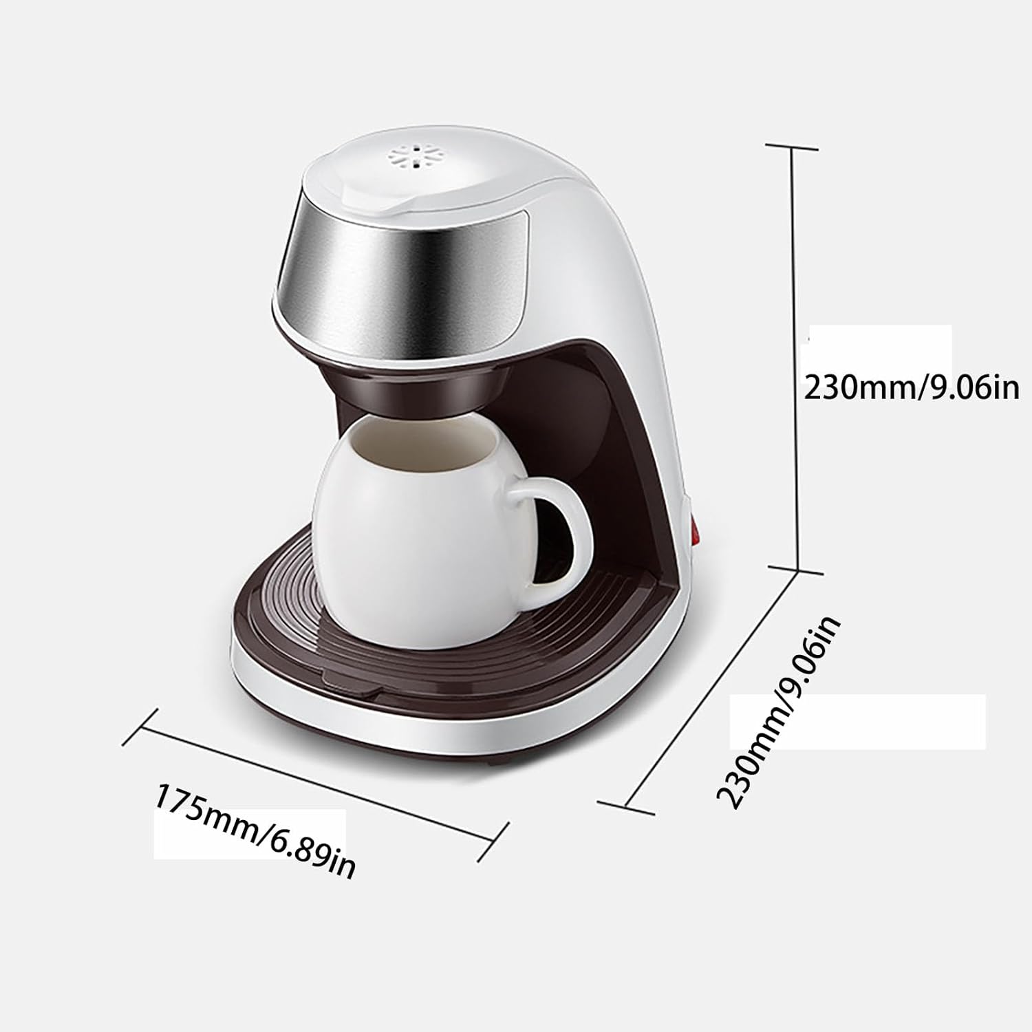 ▶Enjoy a personal coffee moment anytime with the drip coffee maker. Designed with a retro yet modern look, this compact coffee machine delivers a rich and aromatic brew with its steam extraction system. ✦Product Information ◾Model: Drip Coffee Maker ◾Voltage: 110V ◾Power: Electric Heating ◾Capacity: ≤ 300ml ◾Weight: 0.75kg ◾Material: Plastic body, stainless steel panel ◾Coffee Type: Drip ◾Coffee Machine Type: Single-Serve ◾Grind Type: Compatible with coffee powder / flat grind beans ◾Operation: One-button, automatic drip ◾Features: Steam extraction, dry-burn protection, reusable nylon filter, easy cleaning ◾Style:Minimalist ◾Color Options: White ◾Suitable For: Home, Office, Dorm, Small kitchens