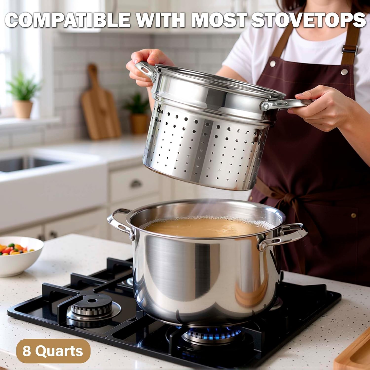 | Included Components | 8-Quart Stainless Steel Stockpot, Pasta Strainer Basket, Steamer Basket, Tempered Glass Lid |