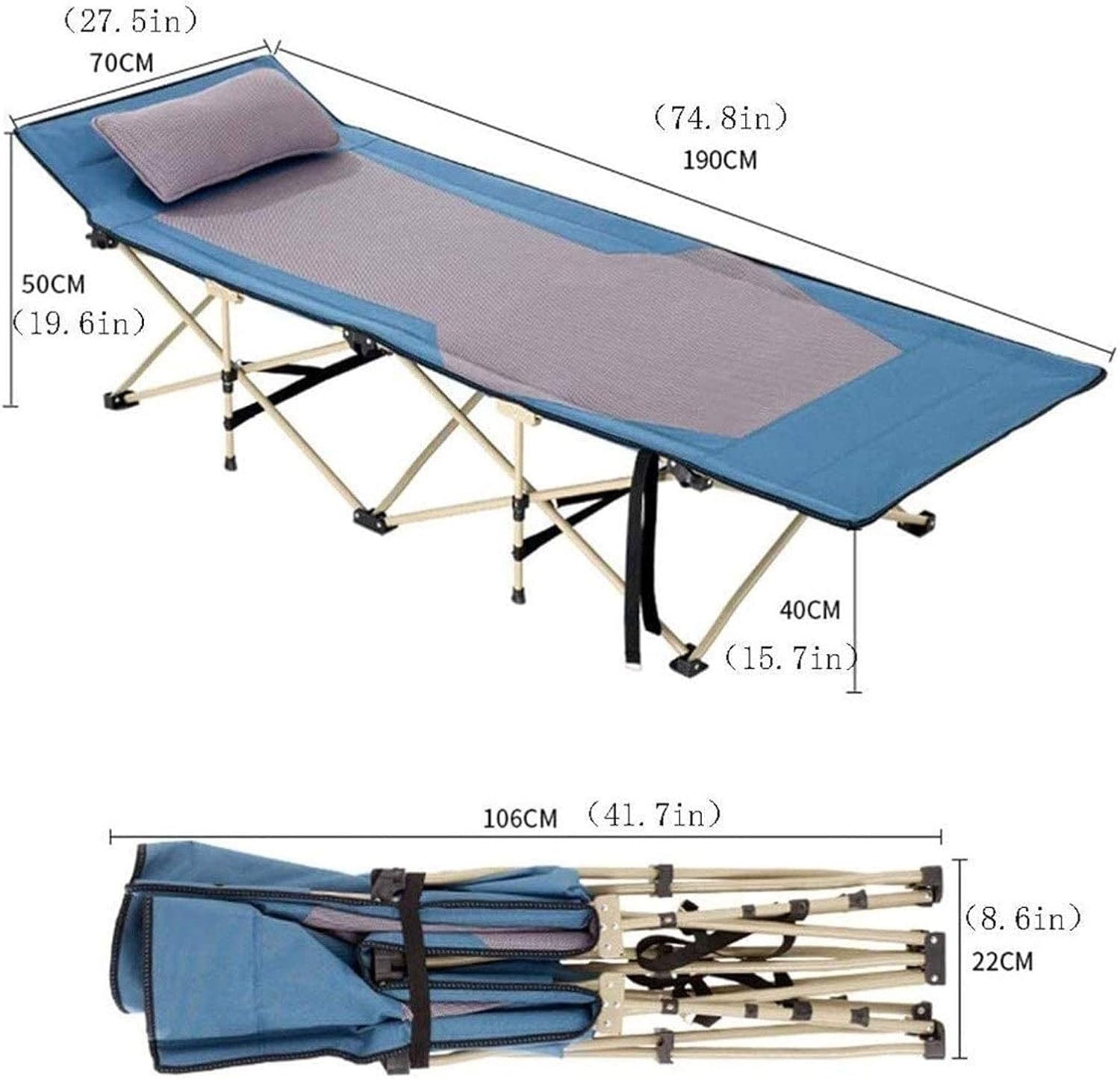Portable camping cot bed This convenient, , strong and can support crib can bring comfortable outdoor camping experience. It has a long and wide and comfortable design, strong bearing capacity. This steel e cot no assembly can be folded into a compact size for camping, hiking, fishing, or facilitate the use of travel, are also very suitable as a guest bed. This camping bed so you have plenty of time to sleep! Outdoor fabric made of a suitable, with the effect of water and drying. This material is made of sturdy 600D Oxford, weatherproof and UV having tear resistant, and washable properties, if necessary. Bed can be folded up to save space, and can be easily transported in a pan rack accompanying. The portable crib can be used endlessly. For example, use as camping beds, sun loungers, bed fishing, travel, activities as a mobile bed or only as a family guest bed. Loungers can be combined with outdoor furniture we designed in the same color scheme very well together. Scaffold thicker steel, double Oxford, laminate holder, green paint, upgrading virgin plastics parts Gross weight 8.6KG size: 190X70X45 (CM) Folded size 16X22X106 (CM) Package Content: 1x Camping cot Thank you for choosing our products and hope to bring you a more convenient experience. We will provide you with an unprecedented quality service, thank you.