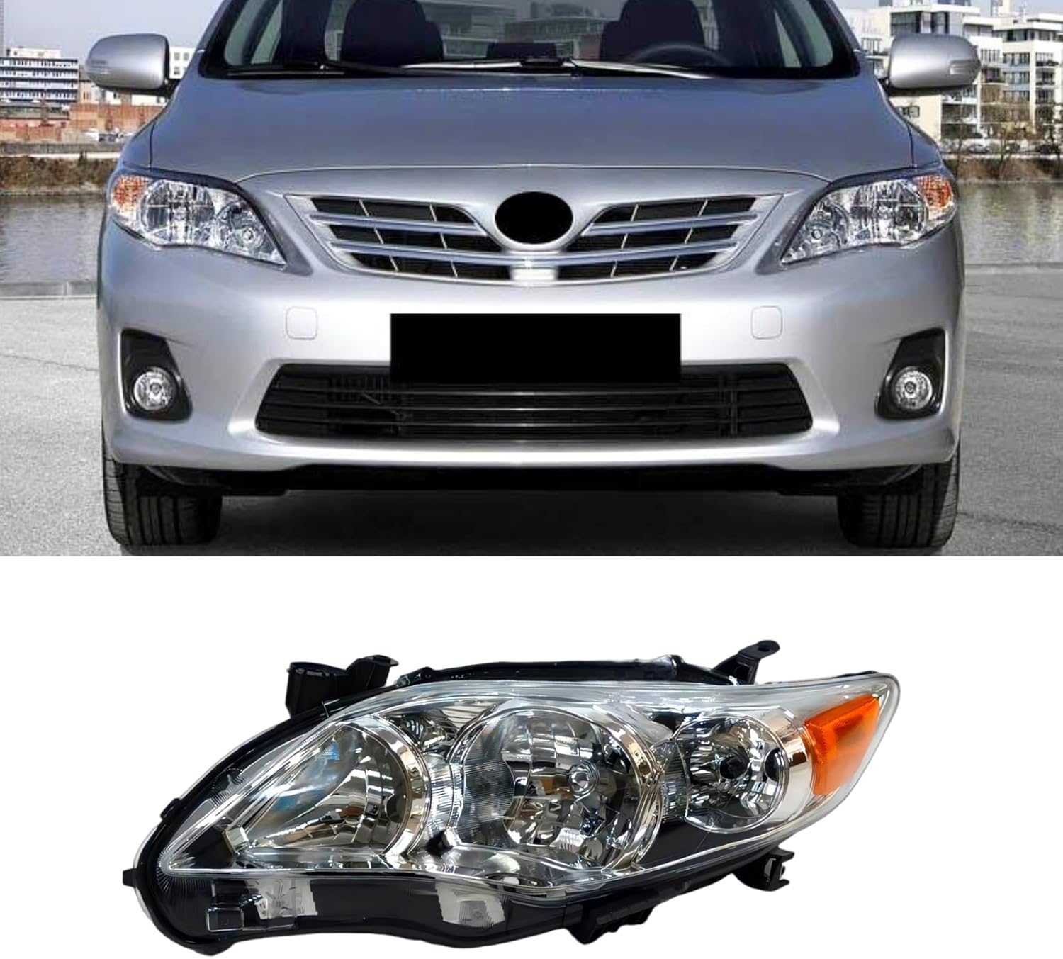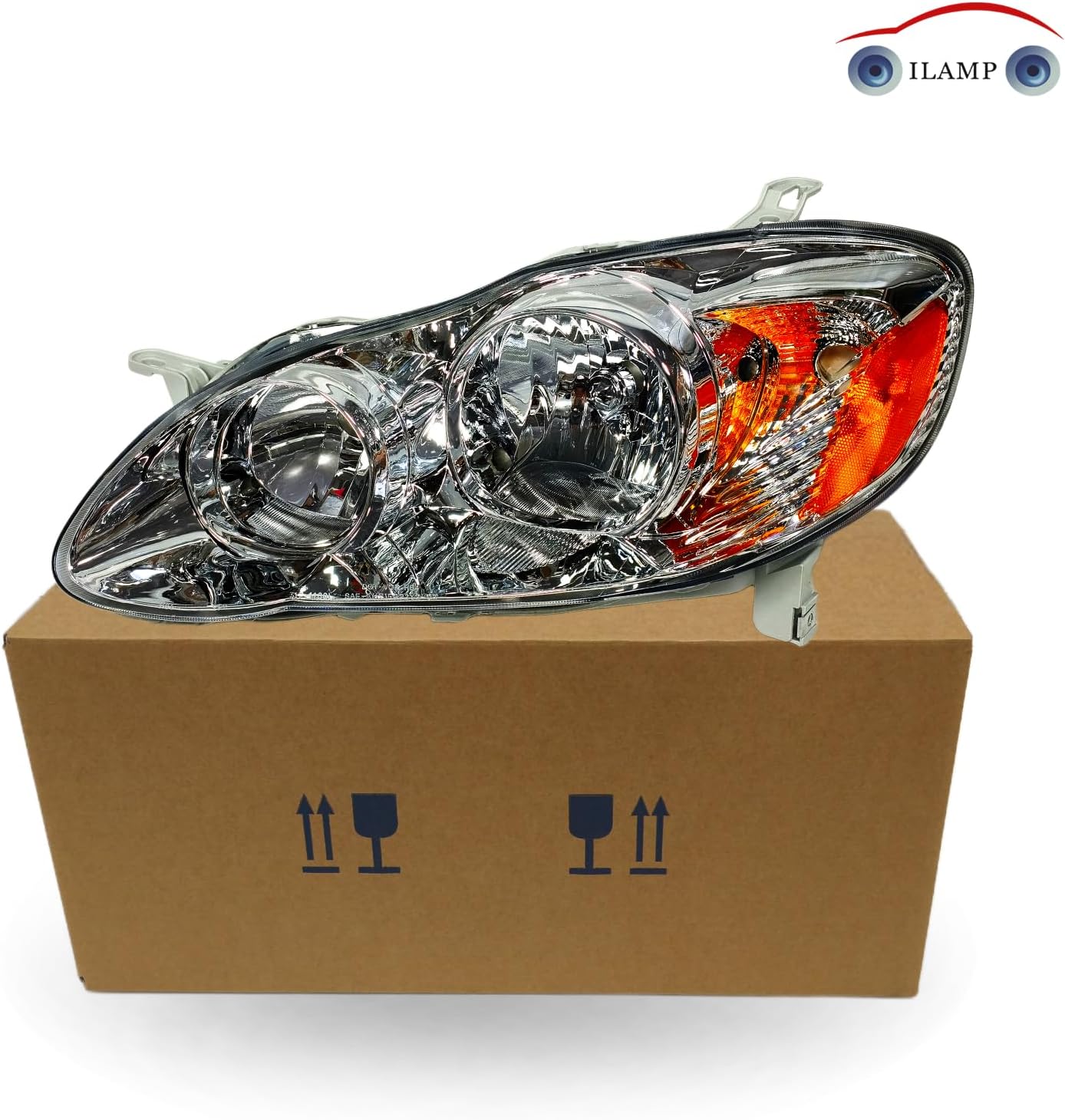 ILAMP Headlights Fit for 2003-2008 Toyota Corolla Headlamp Replacement Clear Lens Chrome Housing Amber Reflector Left Driver LH 81150-02350 AM-CR03A01CL