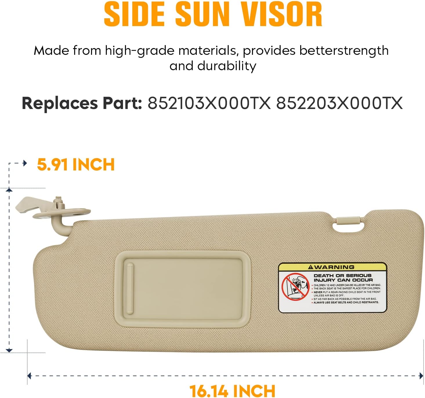 Left & Right Driver Passenger Side Sun Visor for Hyundai Elantra 2011 2012 2013 2014 2015, Replace for 852103X000TX 852203X000TX, Beige Left & Right side Sun Visor