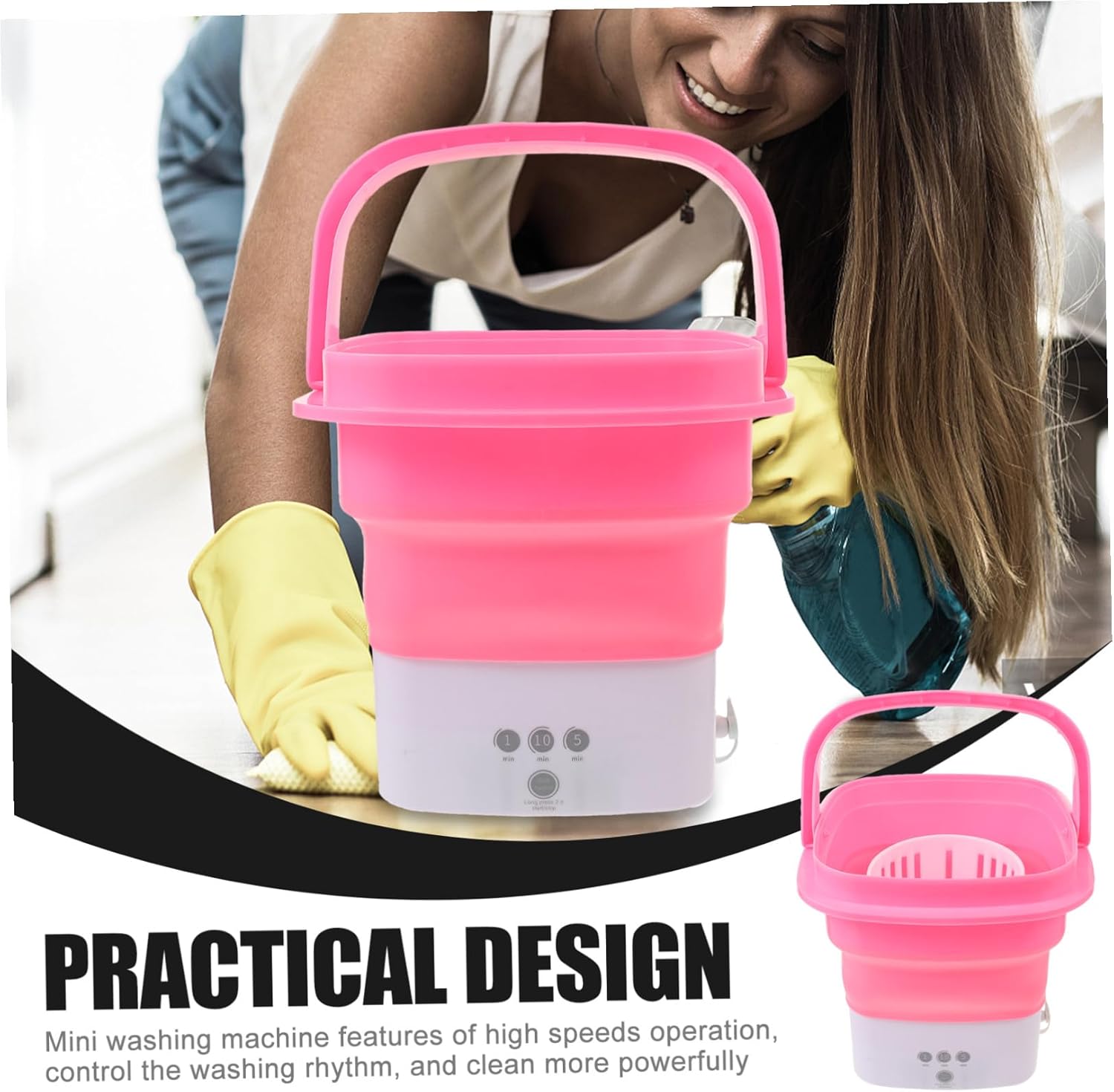 Package List 1 x washer 1 x draining basket 1 x draining 1 x manual Characteristics -Rated power: 36W apartment washing machine -Product Info:Mini folding washing machine -Capacity: 2.8L portable washing machines -Color:Pink portable clothes washing machines -Material:ABS, TPE, copper, PVC travel washer -Size:28.00X26.00X26.00cm/11.00X10.22X10.22in washing machines portable -US: 110V portable small washing machine - Mini washing machine can be given to friends or family as the christmas, mother's day, new year or anniversary portable laundry machine. - Our small washing machine is mini in size when folded, light weight and easy to move, easy to carry around washing machine portable. - Our mini washing machine use professional made process, more resistant to aging, yellowing, and cracking mini laundry machine. - Portable mini washing machine, foldable design, good workmanship details, sturdy and durable, can serve you well small washer. - Special design fine craftsmanship, portable washer is rational design, easy to operate, easy to use according your needs washer machine.Goods Informationsocks washing machine This small washing machine has a foldable design, with wide application,fit for apartments, camping, travel and more.apartment washer The portable washing machine is manufactured with professional process, durable and sturdy, and providing a lasting application life.portable mini folding washing machine Note: This item comes with US plug, please confirm the voltage of your area before purchasing