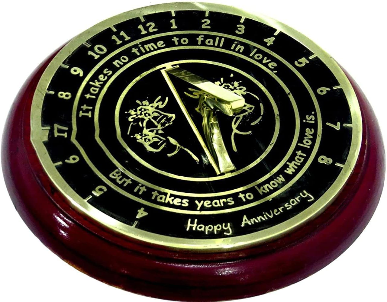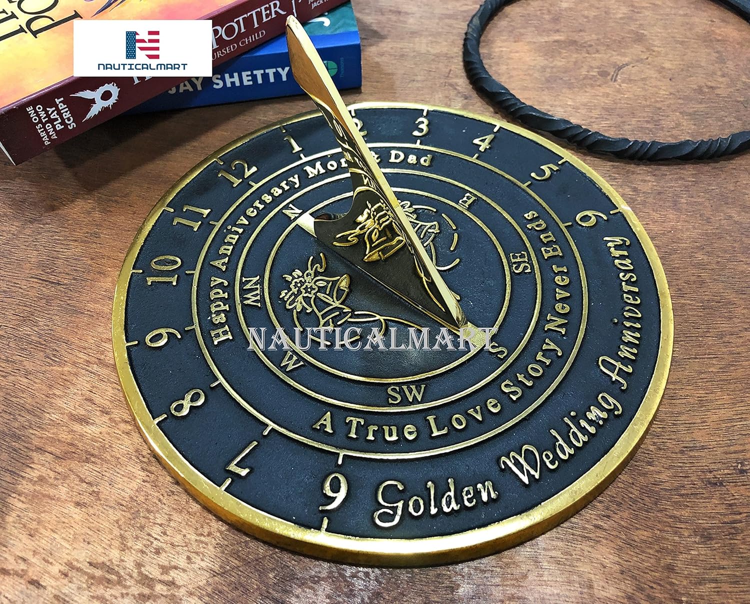A truly beautiful and unique anniversary gift for that lifelong partner, or for that special couple. Thick Solid Cast Recycled Brass Choose from either our standard text version or our special dated anniversary versions. Each sundial will really let them know the thought you have put it to selecting them a truly memorable gift. Each sundial can be fitted outside using the compass points marked around the base to be used as a working sundial. Or they can have the supplied stand attached and simply be used as a beautiful decorative ornament.