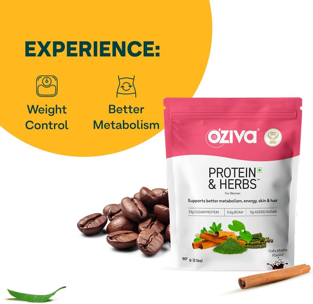 India's first Protein Supplement Specially Formulated for Women- Protein & Herbs consist of Whey protein & Ayurvedic herbs that helps balance hormones naturally. By using a combination of whey protein concentrates and isolates, we're able to pack 23 grams of the pure protein per serving. A glass of Protein and Herbs Shake (32 gm in 200 ml water) gives- 23 gms of protein, 5.5 gms of BCAA and 0g Sugar. Harnessing Ancient Wisdom of Ayurveda backed by Modern Day Research OZiva Protein & Herbs for Women combines Class-1 Whey Protein with our proprietary blend of Shatavari, Flaxseeds (Omega-3), Tulsi, Green tea extract, BCAA that helps boost metabolism, hormonal balance and get a toned look. It helps maintain a healthy hair and skin as well as supports mental clarity, alertness and focusIndia's first Protein Supplement Specially Formulated for Women- Protein & Herbs consist of Whey protein & Ayurvedic herbs that helps balance hormones naturally. By using a combination of whey protein concentrates and isolates, we're able to pack 22 grams of the pure protein per serving. A glass of Protein and Herbs Shake (30 gm in 200 ml water) gives- 22 gms of protein, 6.5 gms of BCAA, 28 of Essential Vitamins and Minerals Harnessing Ancient Wisdom of Ayurveda backed by Modern Day Research OZiva Protein & Herbs for Women combines Class-1 Whey Protein with our proprietary blend of Shatavari, Flaxseeds (Omega-3), Tulsi, Green tea extract, BCAA that helps boost metabolism, hormonal balance and get a toned look. It helps maintain a healthy hair and skin as well as supports mental clarity, alertness and focus