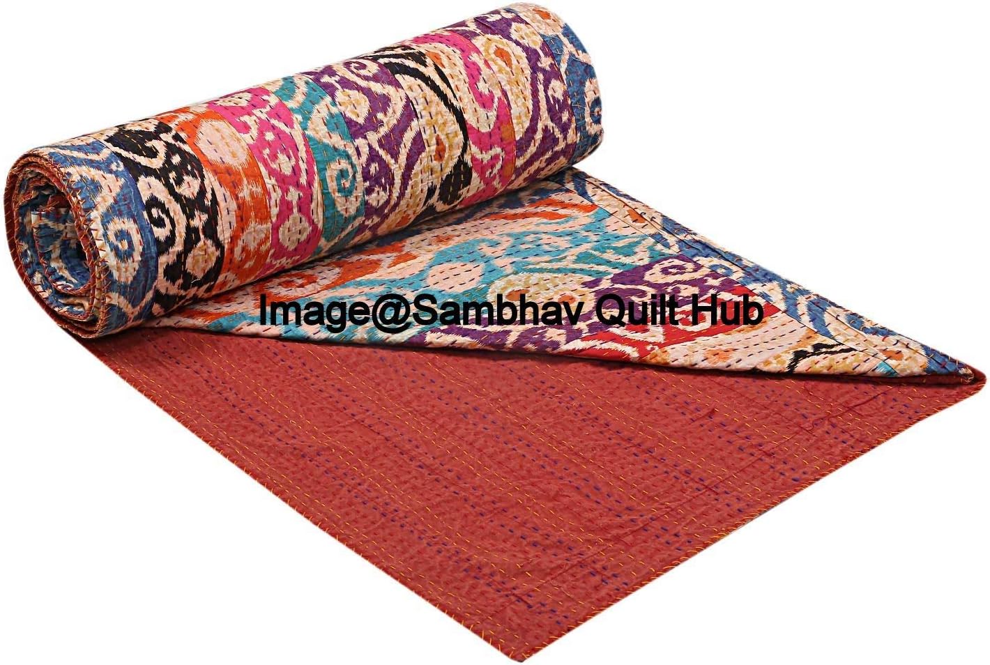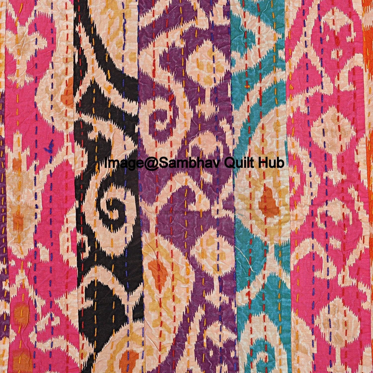 Made with 100% cotton and natural vegetable colors. This piece is of art is completely hand stitched by Women artisan in Rajasthan, India. It can make any room alive with its vivid colors, stunning Floral Floral print and embroidery, made using traditional and famous kantha hand embroidery method. Made from two thin layer of cotton fabric make this piece of art irresistible and also very comfortable. Adding to it's style, this kantha quilt is reversible and both sides can be used. Kantha is still the most popular form of embroidery practiced by rural women.typically use old saris and cloth and layer them with kantha stitch to make a light blanket, throw or bedspread. These cotton lightweight "Quilts" with a beautiful and colorful Paisley design can be used as 1. Bedspread , Bedding Throw , Blanket Or Quilt 2. A Summer Bed Cover 3. A Throw 4. A Fabulous Picnic Rug 5. Nice Bedroom Quilt , This can fit to a 90 x 108/60*90/108X108 inch's wide King/Twin size bed as blanket or throw or can easily fit as bedspread / bed cover to King/Twin bed .Size Twin (60X90), Queen Size (90X108 inch), King Size (108X108) inch