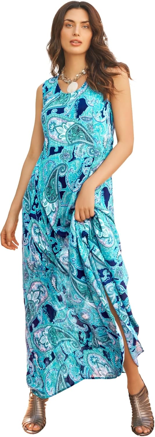 Get ready to own the room in this sweeping sleeveless dress in favorite crinkle fabric. Princess seams and an A-line silhouette make for an unbelievably flattering shape. Pullover style and scoop neckline. Average: 55" length br> Petite: 53" length br> Crinkle rayon br> Machine wash br> Imported