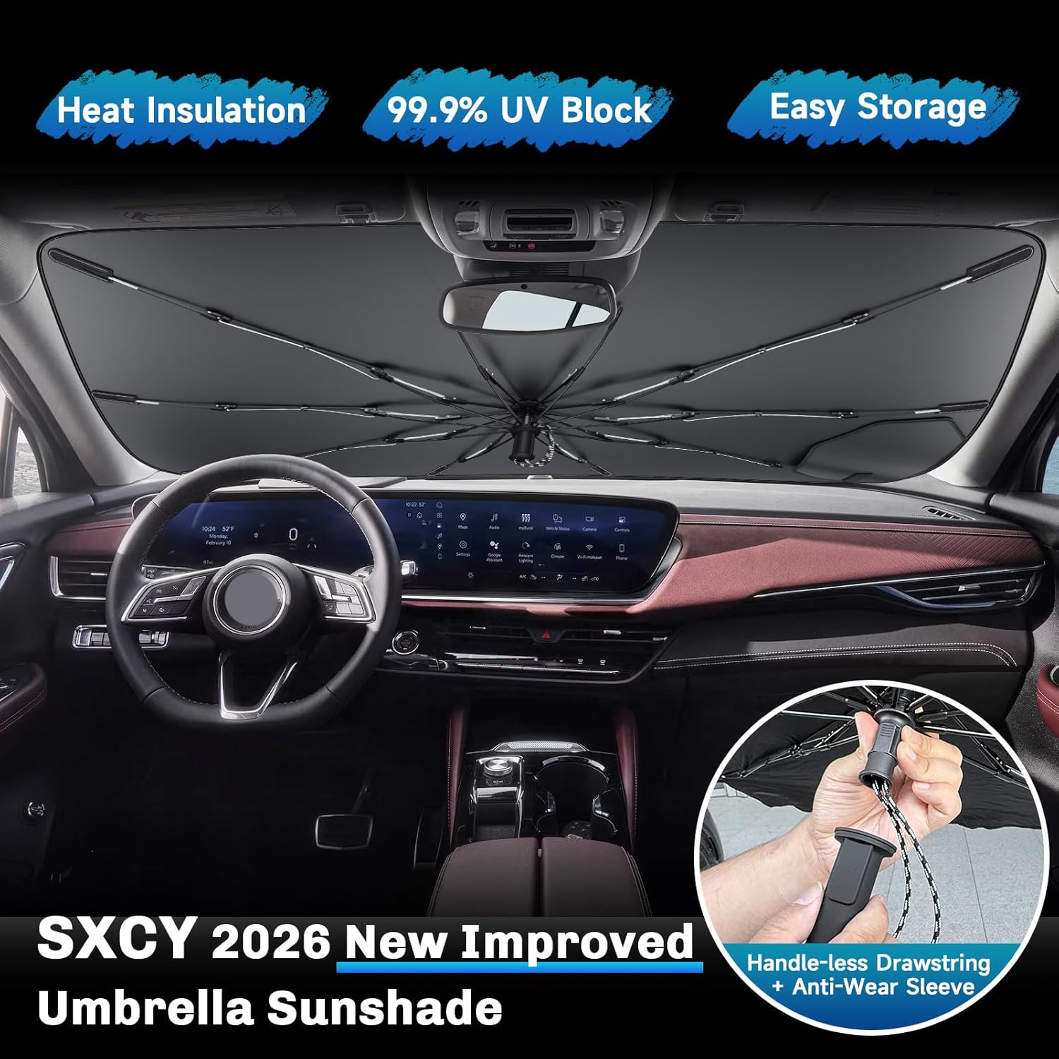 Make Your 2021-2024 2025 2026 Buick Envision Shine with the SXCY Premium Windshield Umbrella SunshadeUpgrade your car’s protection with our 2024 2025 2026 Envision Windshield Umbrella Sunshade, designed for maximum UV protection, durability, and convenience. Perfect for battling summer heat and safeguarding your 2024 2025 2026 Envision ’s interior, it’s the ultimate choice for drivers who demand the best.Why Choose SXCY 2021-2024 2025 2026 Envision Sunshade Umbrella ?99.9% UV Protection: Multi-layer wrinkle-resistant fabric with silver star-dotted coating outperforms others’ 80% UV blockage.Superior Heat Insulation: Reflects sunlight and traps heat, keeping your Envision cooler than single-layer sunshades.Enhanced Durability: 10 carbon fiber ribs and heat-resistant umbrella edges resist heat, rust, and corrosion, outlasting traditional iron frames.Smooth Drawstring Operation: High-strength twin paracord (same as paraglider lines) with a silicone-tipped end ensures smooth, scratch-free use.Universal Fit: Versatile design compatible with most vehicles, including 2025 2026 Envision/Ioniq 5/Ranger/Envista/RDX/Escape/Sportage/Tucson/Rogue/Forester/CX-50/Santa Cruz/Macan/Sorento/Sonata/Mustang Mach-E/ADX/Altima/Integra/Equinox/Frontier/CR-V/NX/HighlanderSXCY Car Windshield Umbrella Key Advantages Over Others:Advanced Multi-Layer Fabric: SXCY umbrella sun shade silver surface reflects sunlight, the multi-layer coating reduces heat step by step, and the black layer blocks heat, preventing interior damage.Scratch-Free Protection: Silicone sleeve covers the center frame after opening to protect your dashboard from scratches.Compact & Portable: Folds compactly, comes with a diamond shaped large storage cloth for easily storage in your Envision for convenient use.Durable Construction: The heat-resistant fabric can withstand temperatures up to 200°C, ensuring long-lasting performance even in extreme conditions.