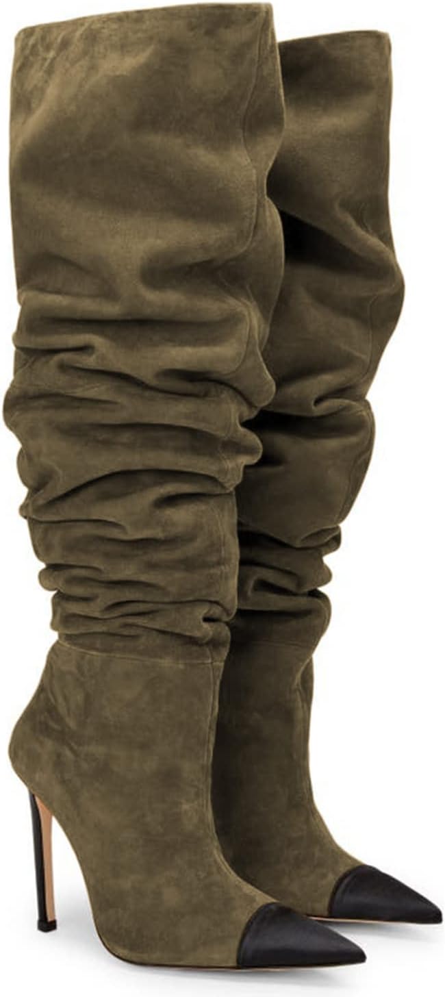 How about some details of the shoes? 【Heel height】approx. 10cm / approx. 4 inches 【Material】Suede 【Color】Caramel, Light Green, Dark Green, Dark Blue, Purple, Black 【Heel style】 Pointed Toe 【Wear method】Elastic Knee High Boot 【Style】 Pointed Toe Boot for Women. What size should I choose? This style runs large, so buy it 0.5 size down. People with fat feet choose normal size. Do you have satisfaction guarantee? Yes, I do. No risk purchasing. If you have any question about the size, color, etc. Please feel free to let me know through our store customer center. When will I get response after sending an E-mail? Within 24 hours. Why I choose FOWT? FOWT specializes in making shoes for 20 years. FOWT provides customization service of color, size, texture, shape, etc. FOWT promises that every pair of shoes are handmade.